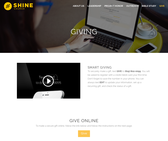 - GIVE has a place of prominence on the home page navigation.